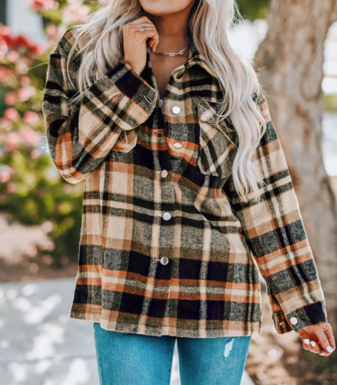 Sweet yet rugged plaid details adorn this cozy shacket. Designed with a button front, long sleeves, large front pockets & an oversized design. Soft & warm for chilly seasons, and the plaid print is very classic and chic. So cute to bundle up in no matter if you are staying in or going out.